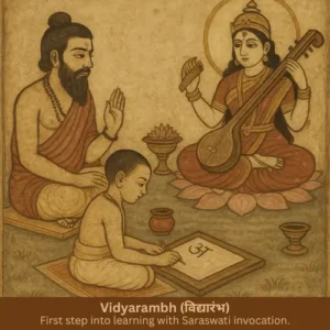 Vidyarambh (Beginning of Education) – The child’s first step into learning, performed with prayers to Goddess Saraswati for wisdom and knowledge.