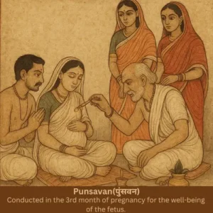 Punsavan Sanskar (Fetal Ceremony) is the second of the sixteen samskaras in Hindu tradition and is usually performed in the third month of pregnancy, when the fetus begins to develop distinct features. This sacred ritual is conducted to bless the unborn child with good health, intelligence, and spiritual strength, and to ensure the physical and mental well-being of the expectant mother.