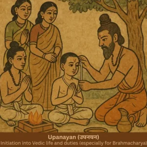 Upanayan (Sacred Thread) – A spiritual initiation marking the beginning of Vedic education and disciplined student life (Brahmacharya).